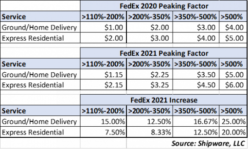 2021 FedEx, UPS Peak Season Surcharges to Impact Large Packages and High-Volume Residential Shippers
